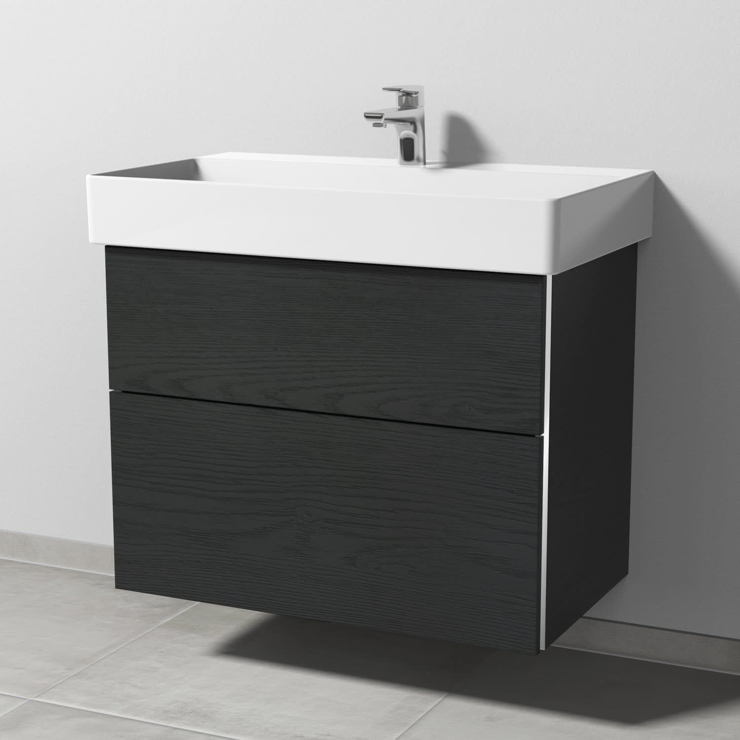 Sanipa 3way Waschtischunterbau für Keramik-Waschtisch Dura Square 80 cm, 2 Auszüge mit Griffleisten