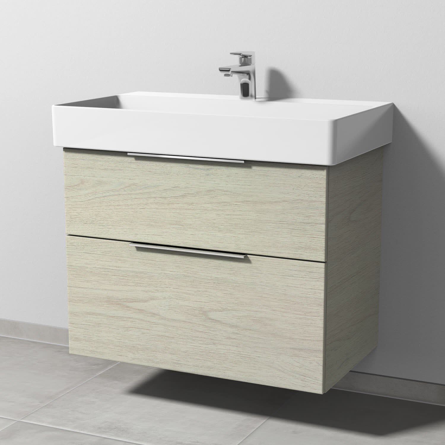 Sanipa 3way Waschtischunterbau für Keramik-Waschtisch Dura Square 80 cm, 2 Auszüge mit Aufsatzgriff