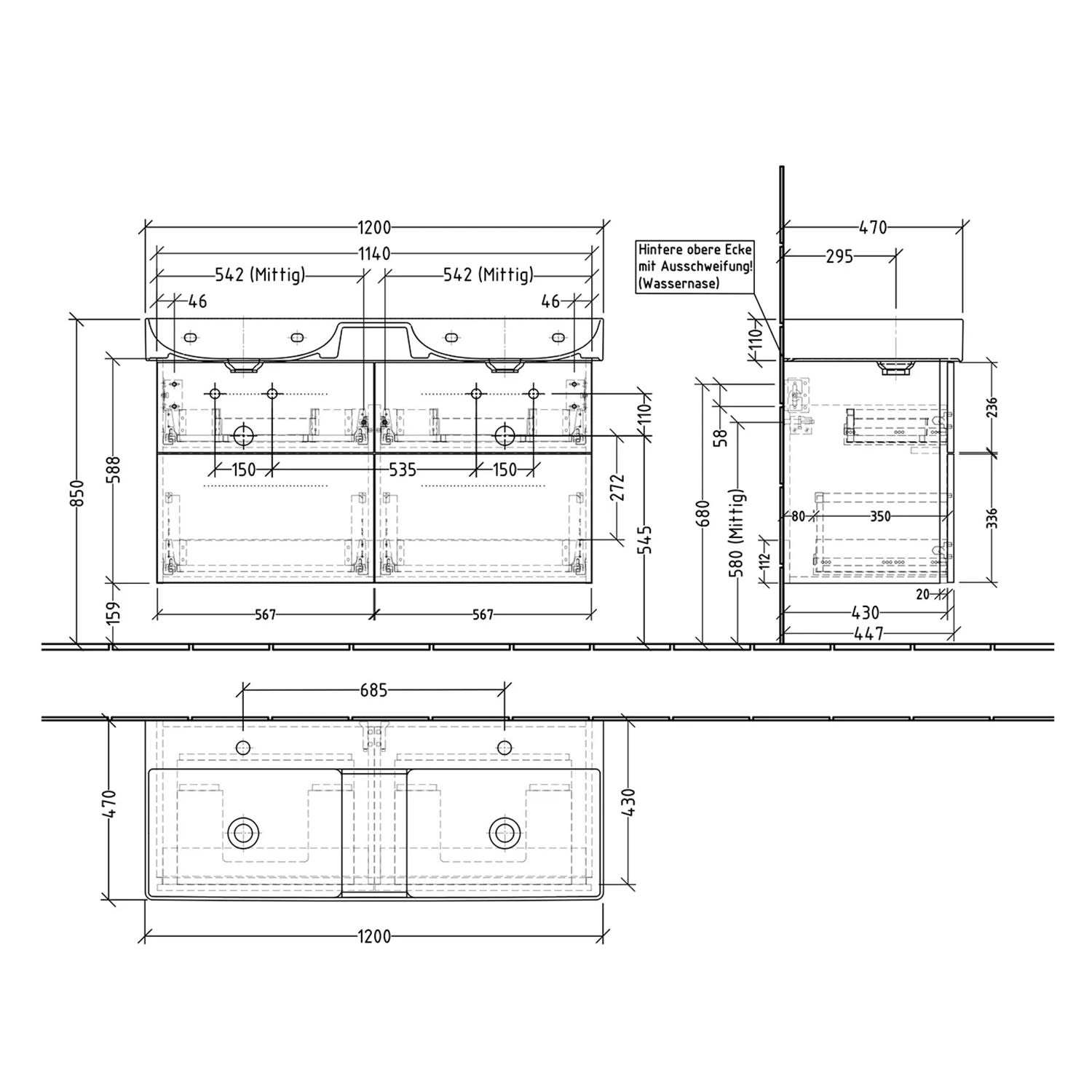 - obere Auszüge mit eckigem Siphonausschnitt