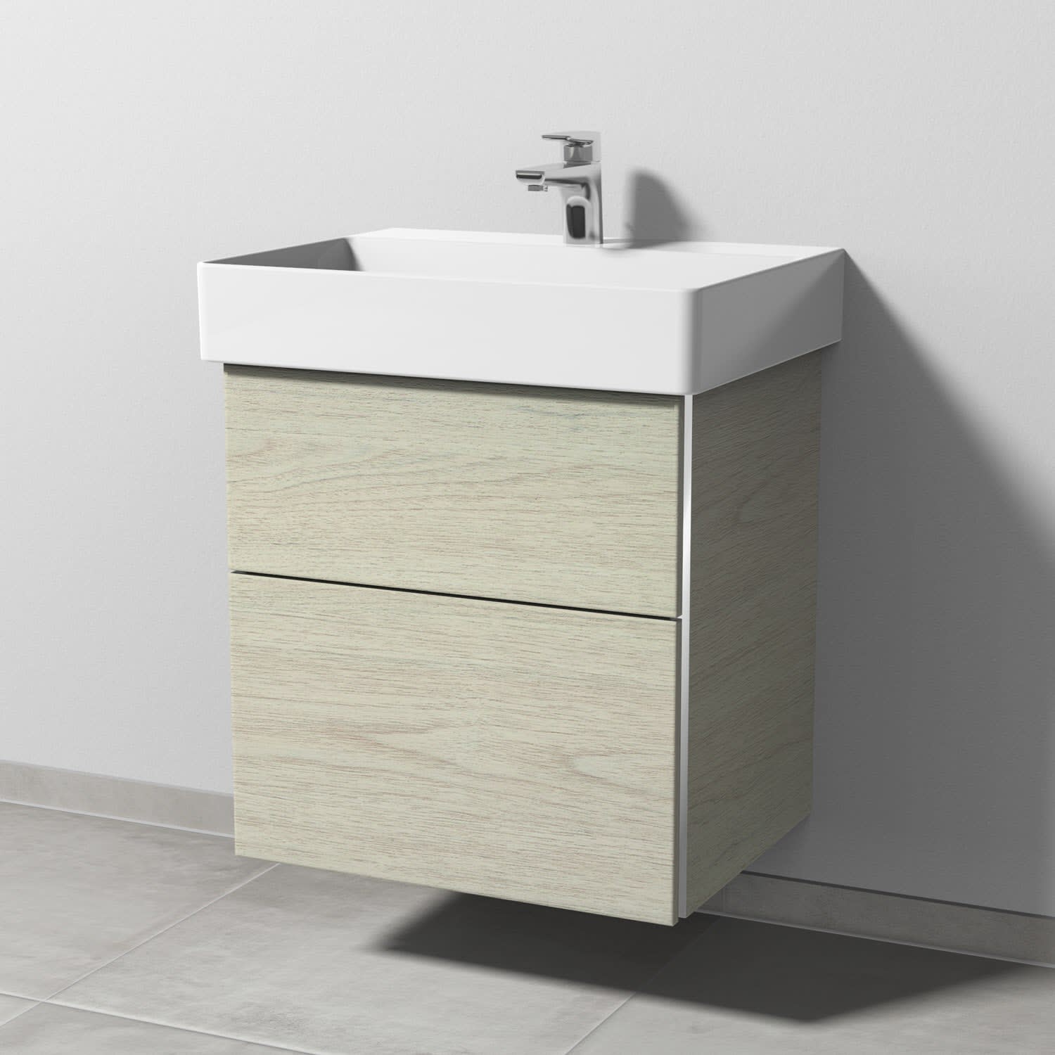 Sanipa 3way Waschtischunterbau für Keramik-Waschtisch Dura Square 60 cm, 2 Auszüge mit Griffleisten
