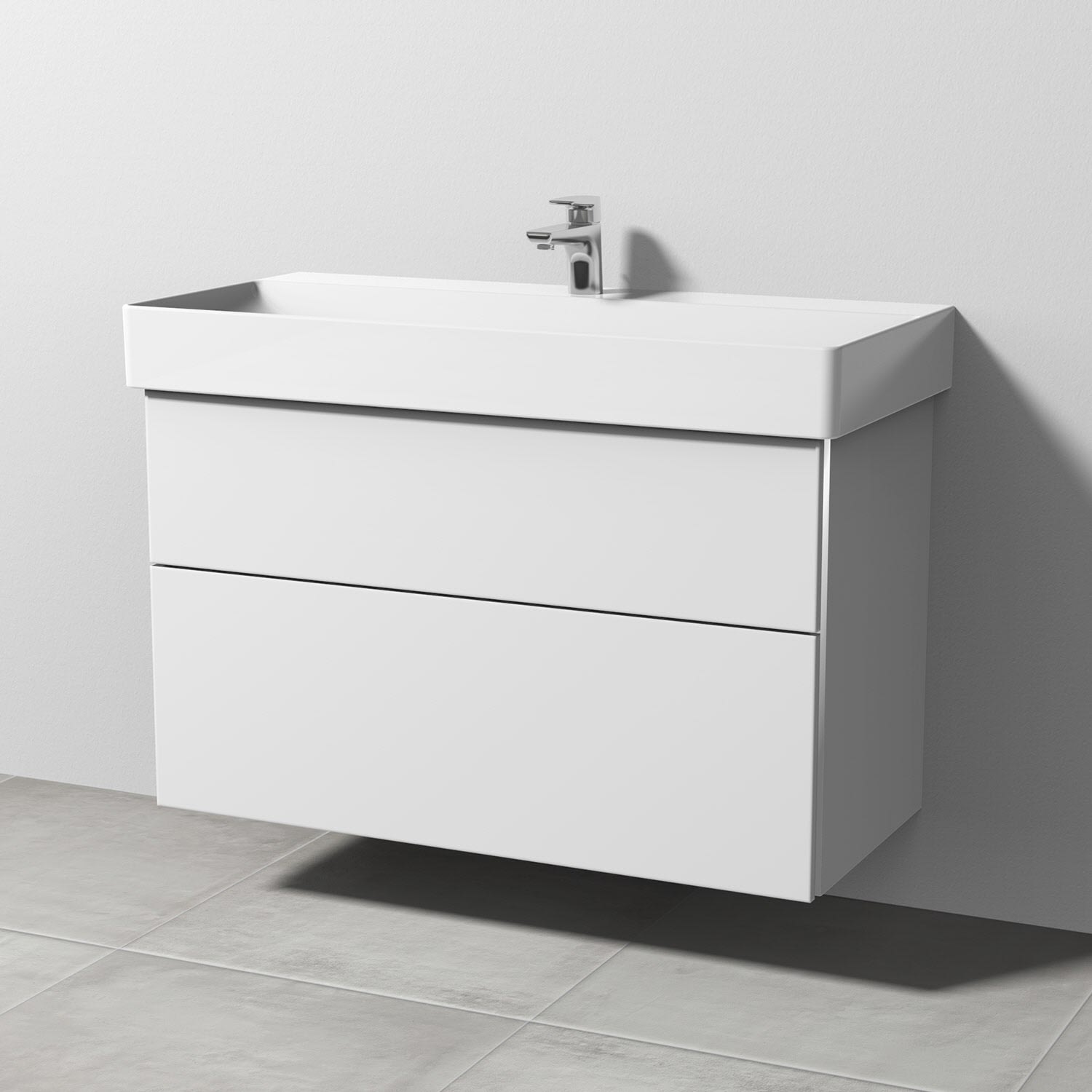 Sanipa 3way Waschtischunterbau für Keramik-Waschtisch Dura Square 100 cm, 2 Auszüge mit Griffleisten
