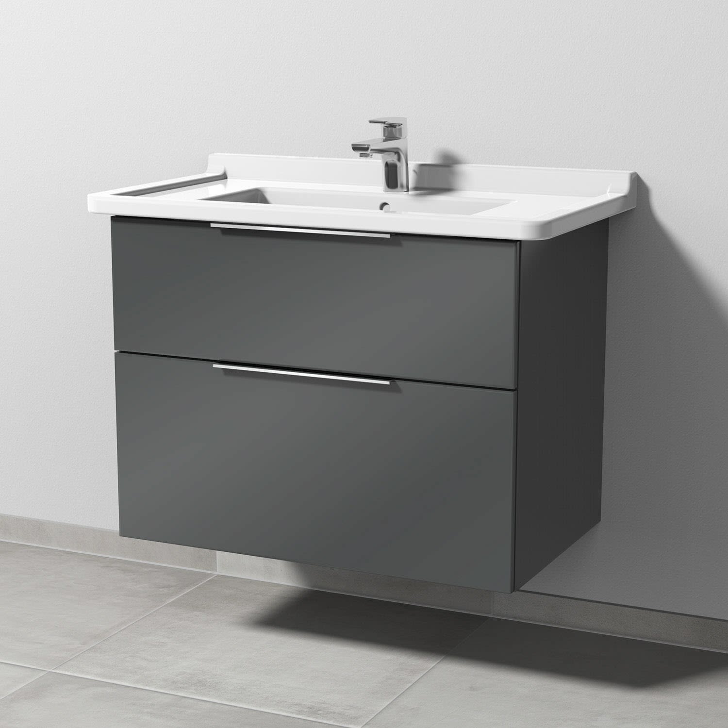 Sanipa 3way Waschtischunterbau für Keramik-Waschtisch Starck 3 85 cm, 2 Auszüge mit Aufsatzgriff