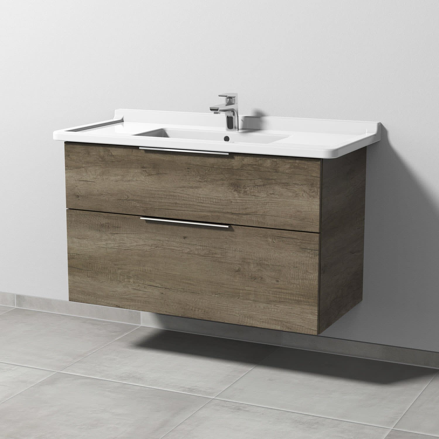 Sanipa 3way Waschtischunterbau für Keramik-Waschtisch Starck 3 105 cm, 2 Auszüge mit Aufsatzgriff