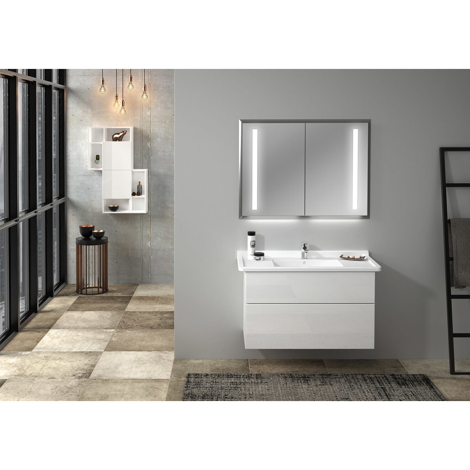 Sanipa 3way Waschtischunterbau für Keramik-Waschtisch Starck 3 105 cm, 2 Auszüge mit Griffleisten