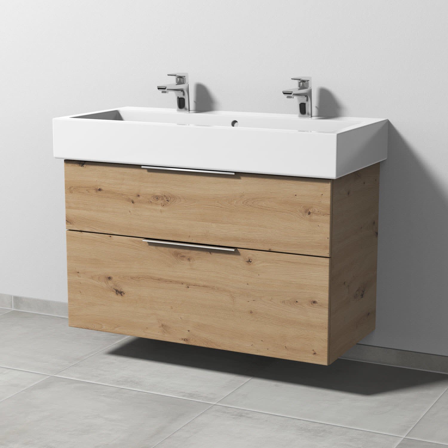 Sanipa 3way Waschtischunterbau für Keramik-Waschtisch Vero 100 cm, 2 Auszüge mit Aufsatzgriff