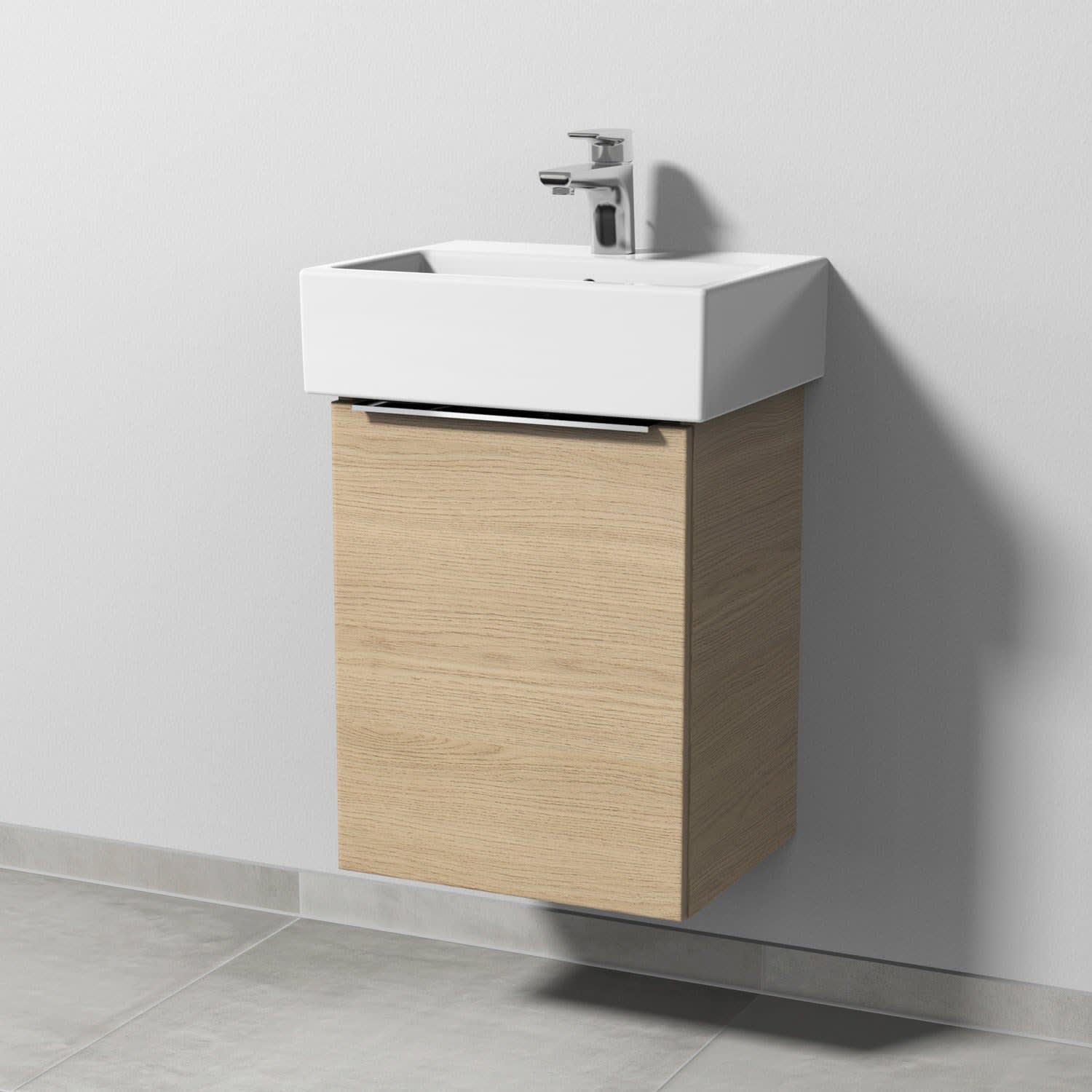 Sanipa 3way Waschtischunterbau für Keramik-Waschtisch Vero Air 45 cm, 1 Tür, Anschlag links, mit Aufsatzgriff
