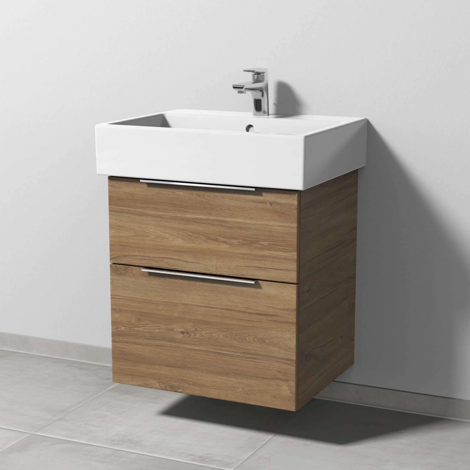 Sanipa 3way Waschtischunterbau für Keramik-Waschtisch Vero Air 60 cm, 2 Auszüge mit Aufsatzgriff
