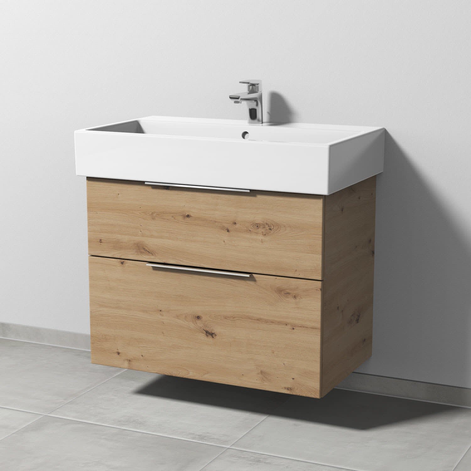 Sanipa 3way Waschtischunterbau für Keramik-Waschtisch Vero Air 80 cm, 2 Auszüge mit Aufsatzgriff