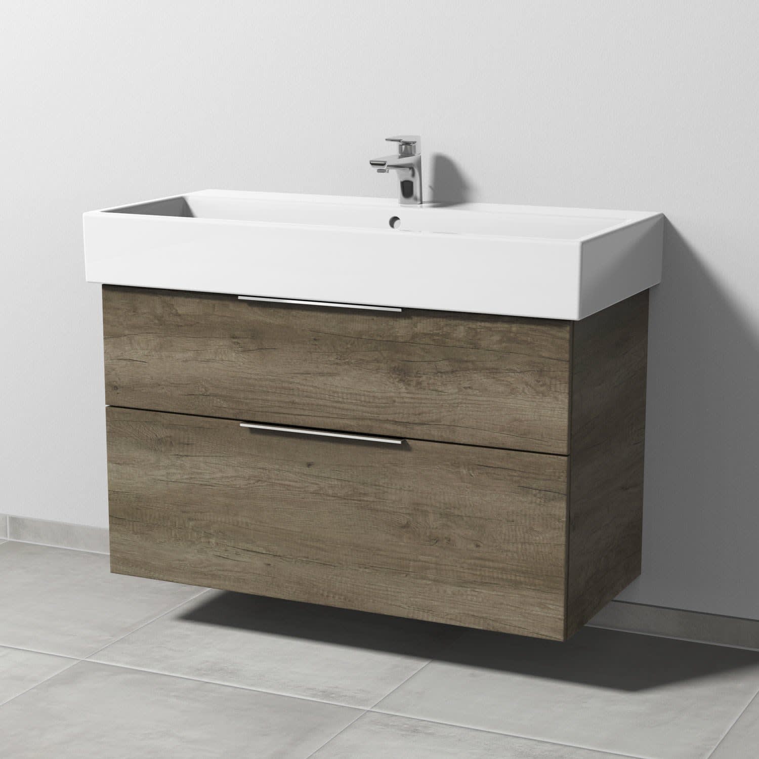 Sanipa 3way Waschtischunterbau für Keramik-Waschtisch Vero Air 100 cm, 2 Auszüge mit Aufsatzgriff