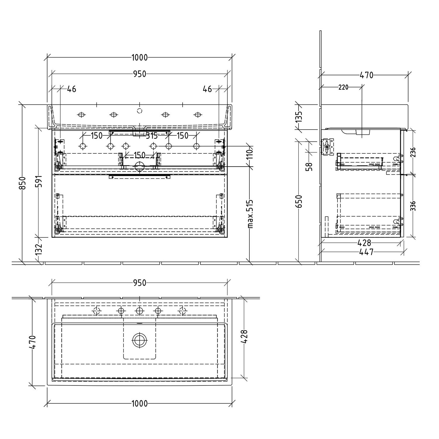- Breite: 100 cm, Modell-Nr. 2350100000, 2350100024, 2350100030, 2350100041, 2350100043, 2350100044, 2350100060 und 2350100070