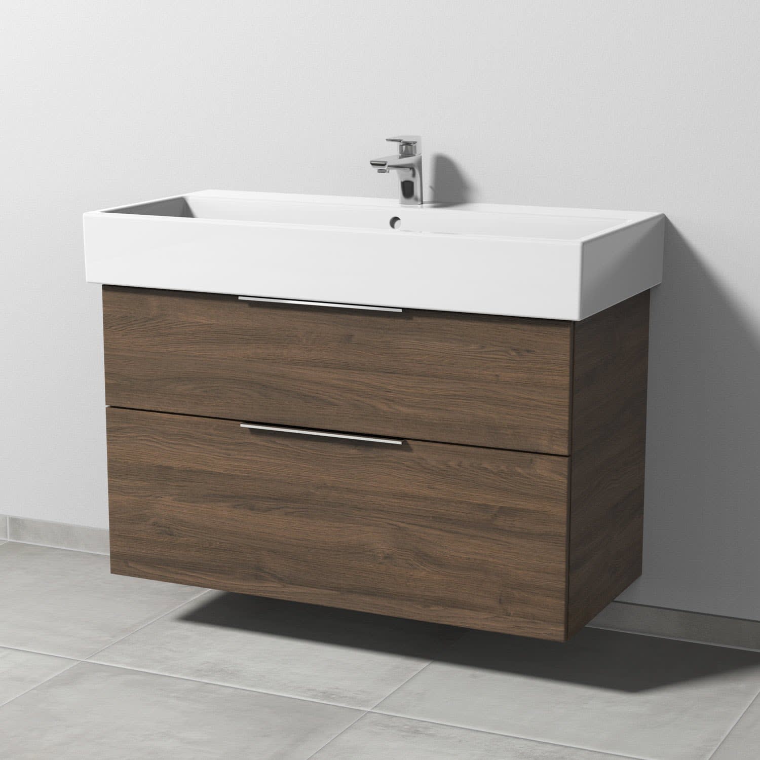 Sanipa 3way Waschtischunterbau für Keramik-Waschtisch Vero Air 100 cm, 2 Auszüge mit Aufsatzgriff