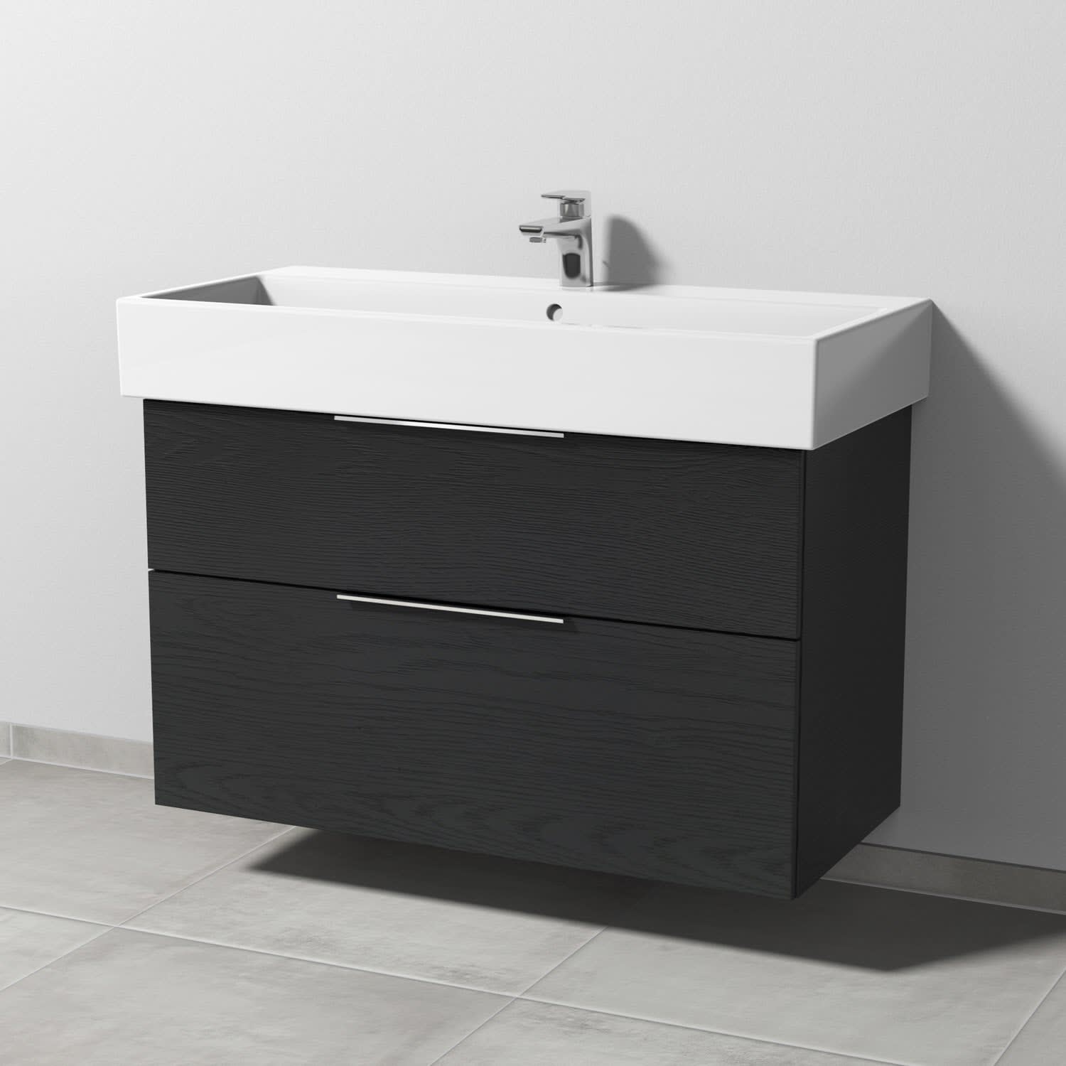 Sanipa 3way Waschtischunterbau für Keramik-Waschtisch Vero Air 100 cm, 2 Auszüge mit Aufsatzgriff