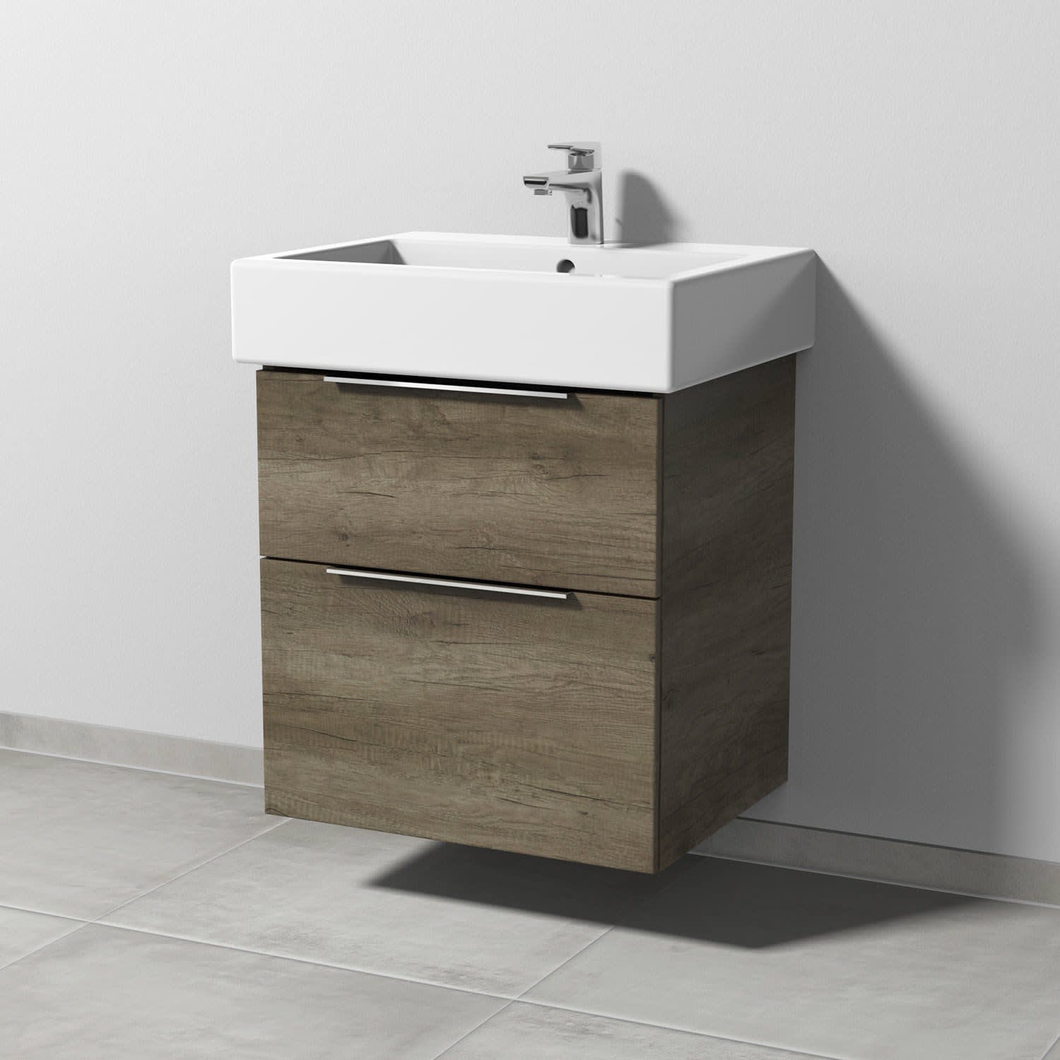 Sanipa 3way Waschtischunterbau für Keramik-Waschtisch Vero 60 cm, 2 Auszüge mit Aufsatzgriff