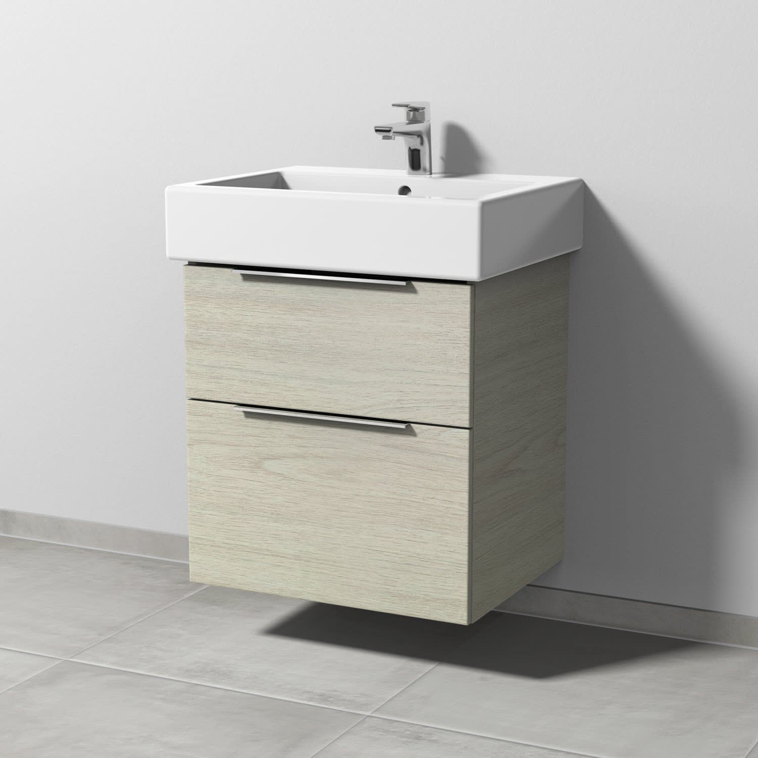 Sanipa 3way Waschtischunterbau für Keramik-Waschtisch Vero 60 cm, 2 Auszüge mit Aufsatzgriff