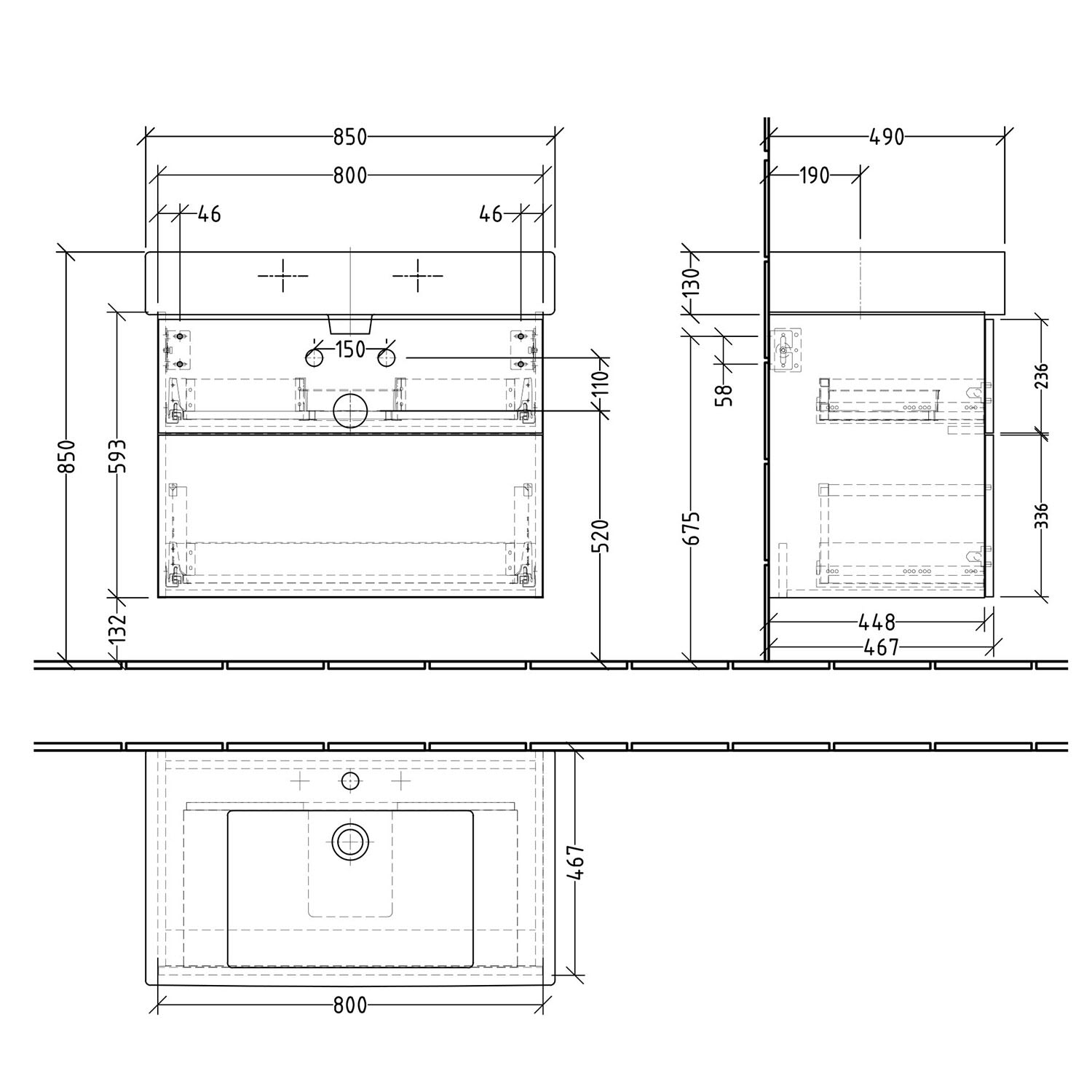 - oberer Auszug mit eckigem Siphonausschnitt