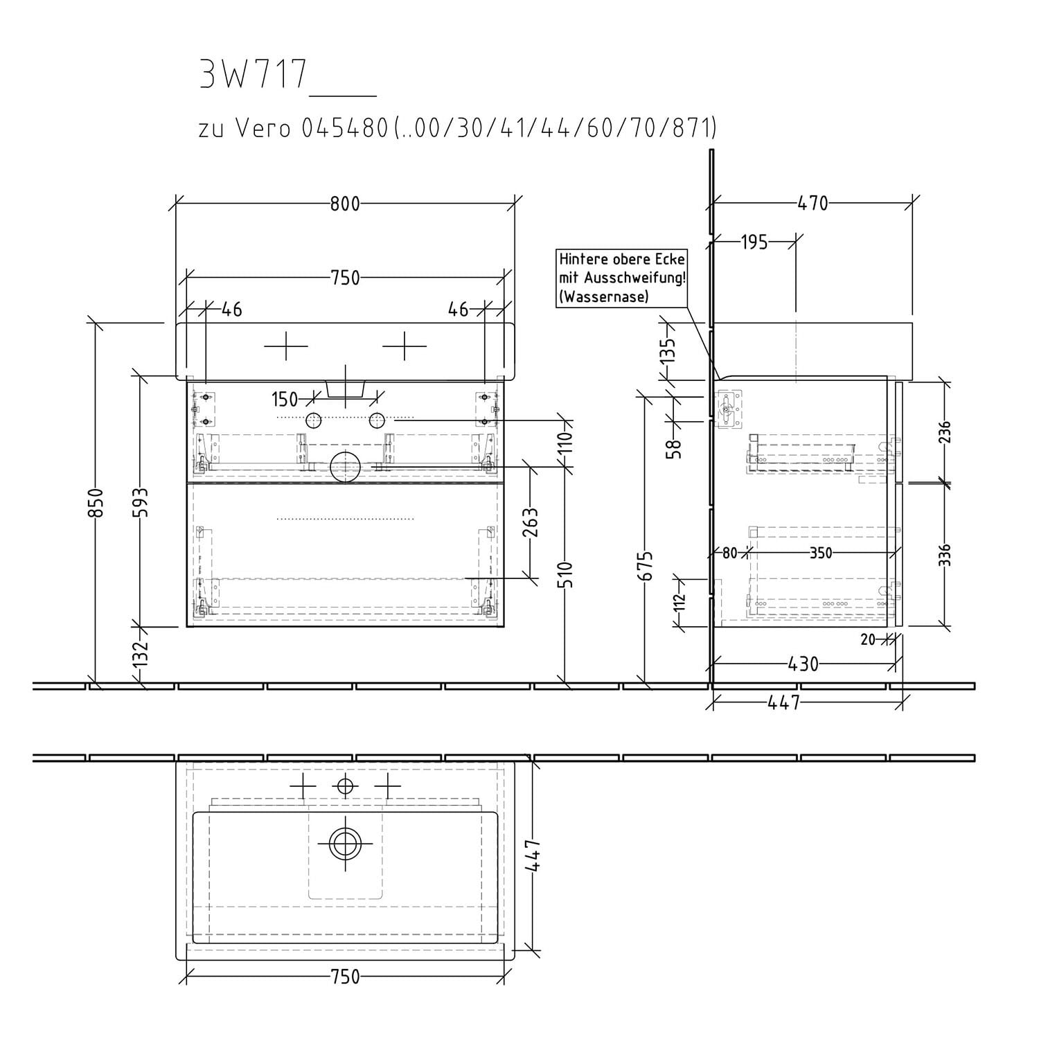 - oberer Auszug mit eckigem Siphonausschnitt