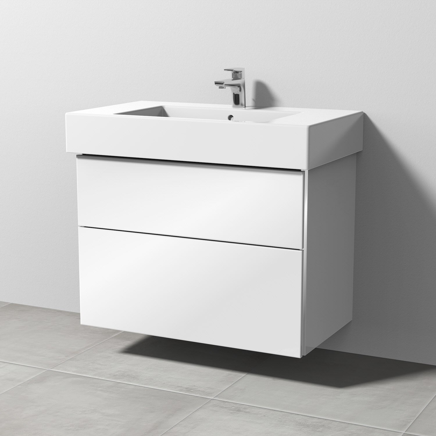 Sanipa 3way Waschtischunterbau für Keramik-Waschtisch Vero 85 cm, 2 Auszüge mit Griffleisten