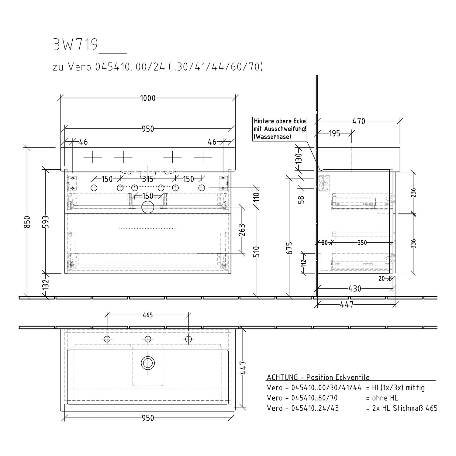 Sanipa 3way Waschtischunterbau für Keramik-Waschtisch Vero 100 cm, 2 Auszüge mit Griffleisten