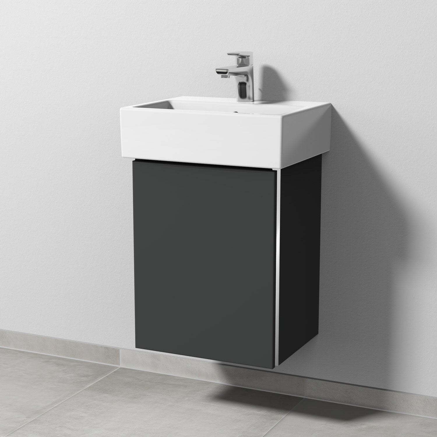Sanipa 3way Waschtischunterbau für Keramik-Waschtisch Vero Air 45 cm, 1 Tür, Anschlag links, mit Griffleiste