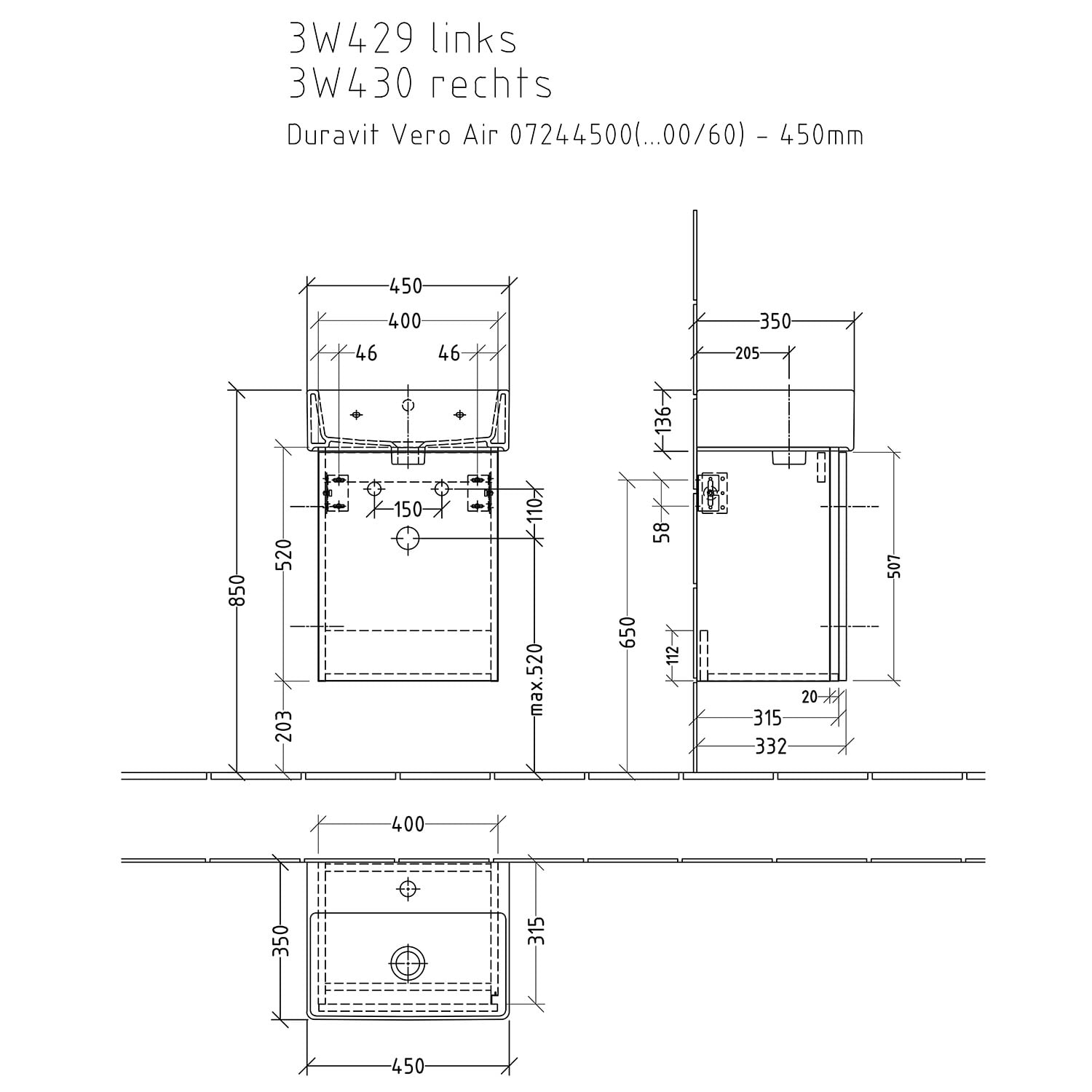 - Breite: 45 cm Modell-Nr. 0724450000 und 0724450060
