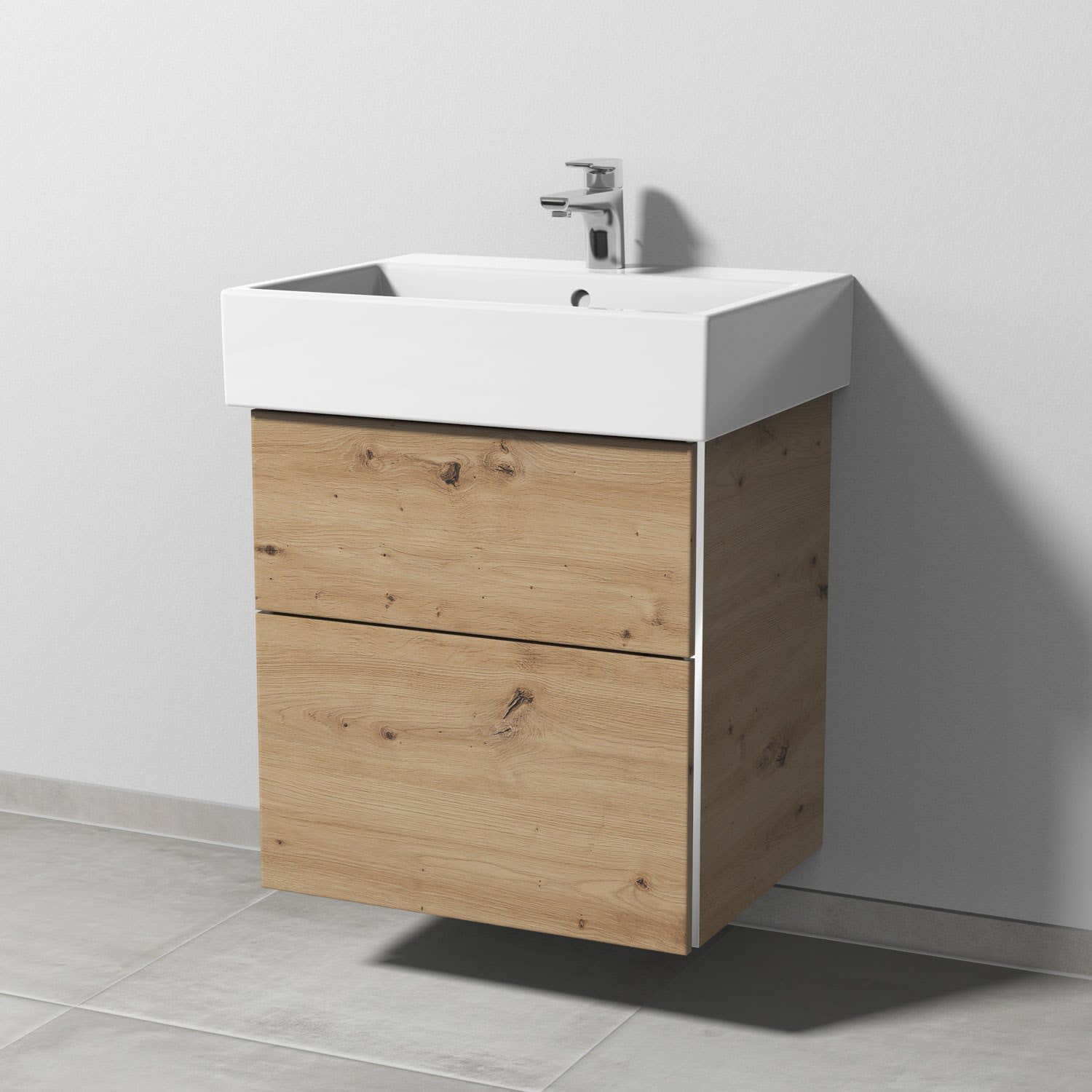 Sanipa 3way Waschtischunterbau für Keramik-Waschtisch Vero Air 60 cm, 2 Auszüge mit Griffleisten