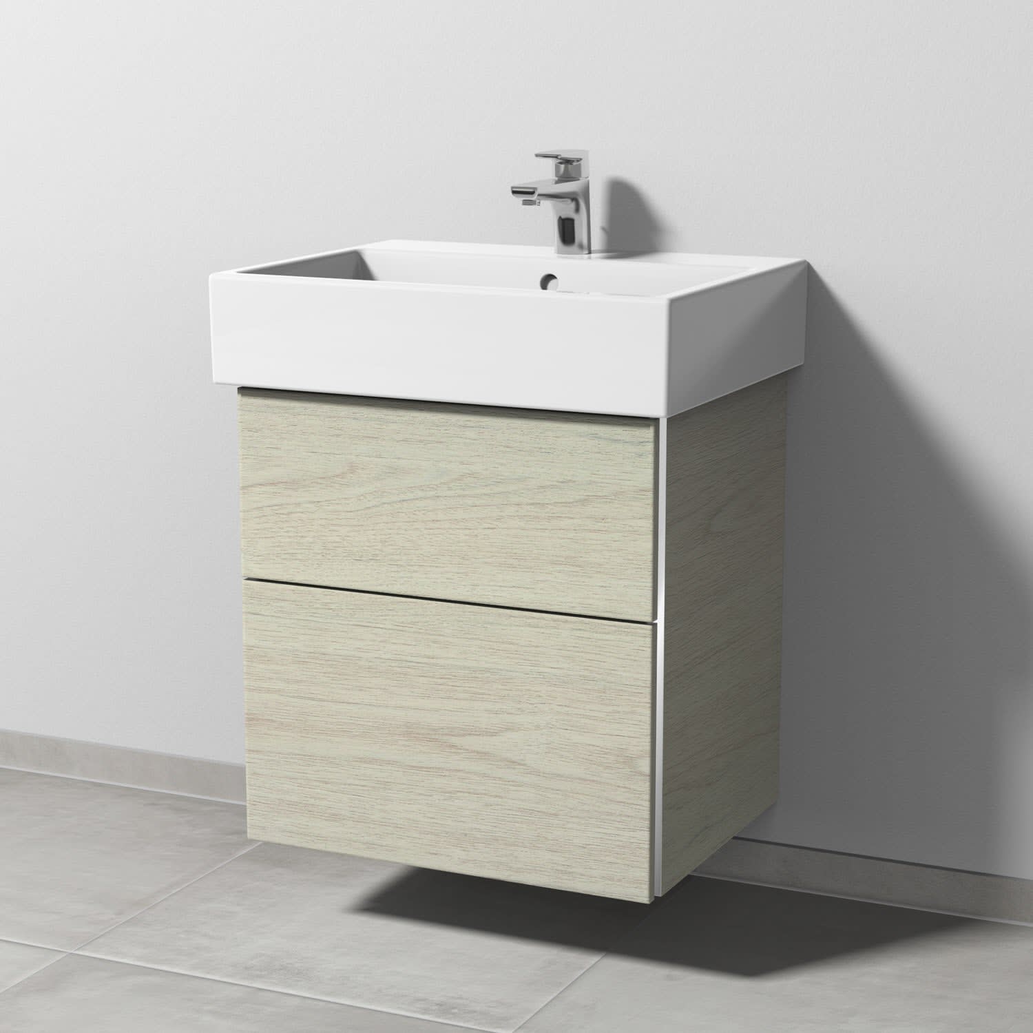 Sanipa 3way Waschtischunterbau für Keramik-Waschtisch Vero Air 60 cm, 2 Auszüge mit Griffleisten