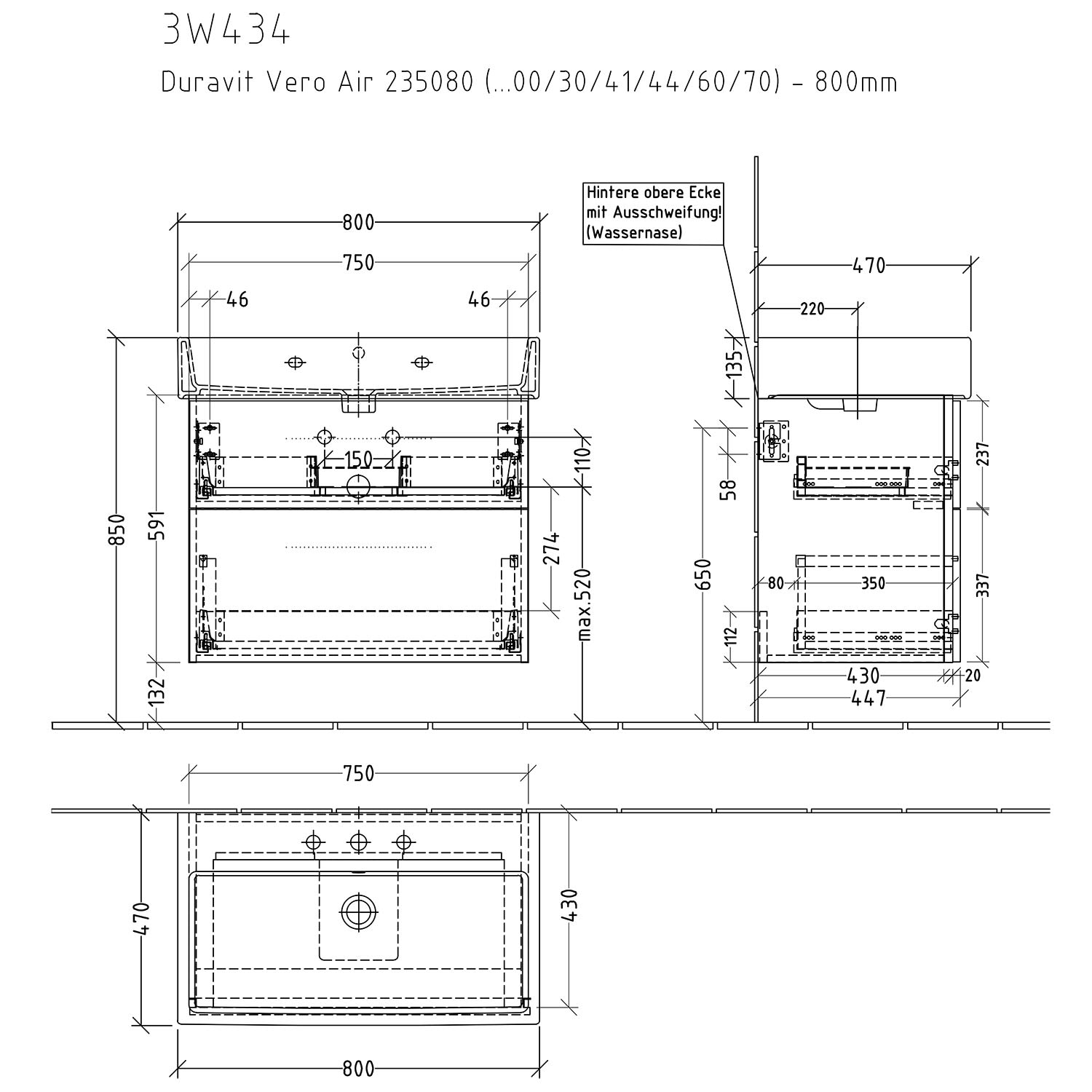 Sanipa 3way Waschtischunterbau für Keramik-Waschtisch Vero Air 80 cm, 2 Auszüge mit Griffleisten