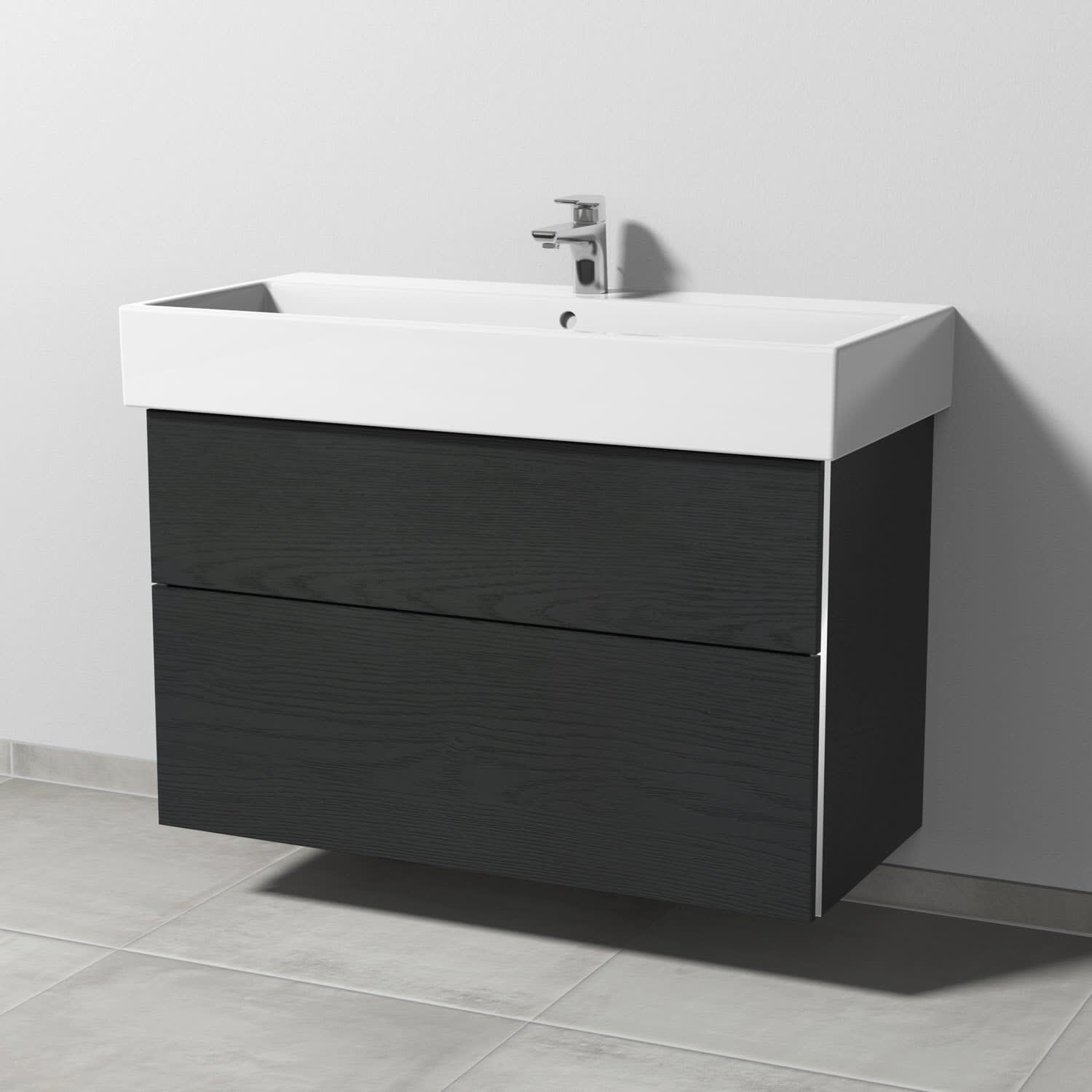 Sanipa 3way Waschtischunterbau für Keramik-Waschtisch Vero Air 100 cm, 2 Auszüge mit Griffleisten