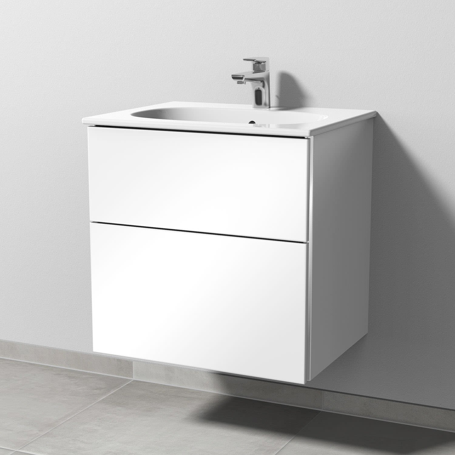 Sanipa 3way Waschtischunterbau für Keramik-Waschtisch Acanto 60 cm, flach, 2 Auszüge mit Stangengriff 0100