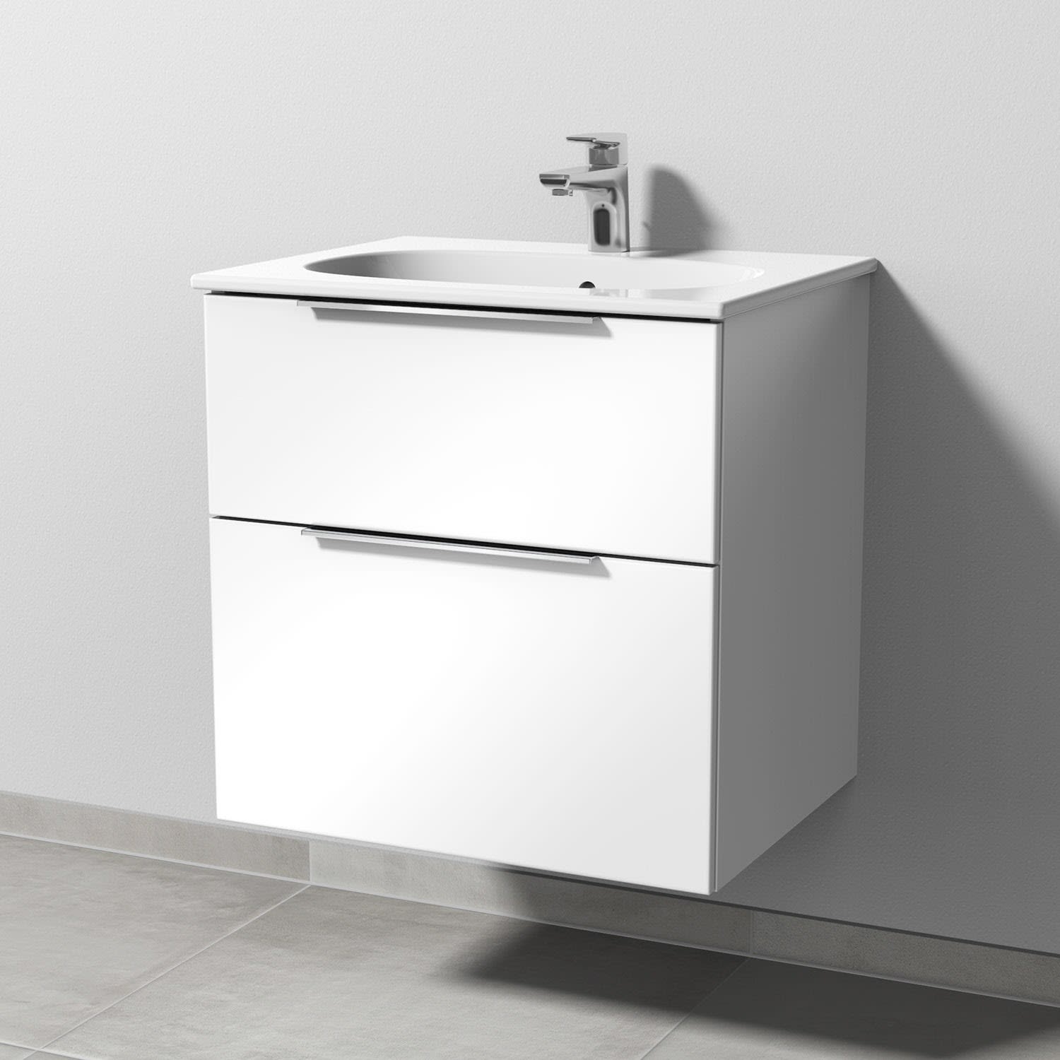 Sanipa 3way Waschtischunterbau für Keramik-Waschtisch Acanto Slim 60 cm, 2 Auszüge mit Aufsatzgriff