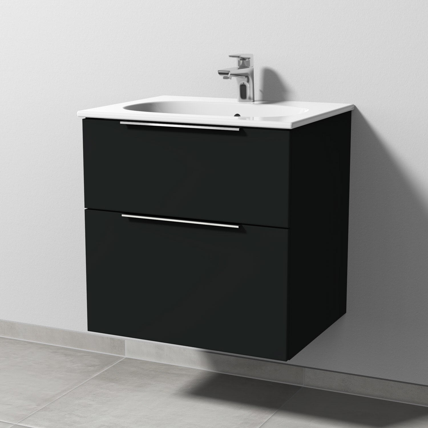 Sanipa 3way Waschtischunterbau für Keramik-Waschtisch Acanto Slim 60 cm, 2 Auszüge mit Aufsatzgriff