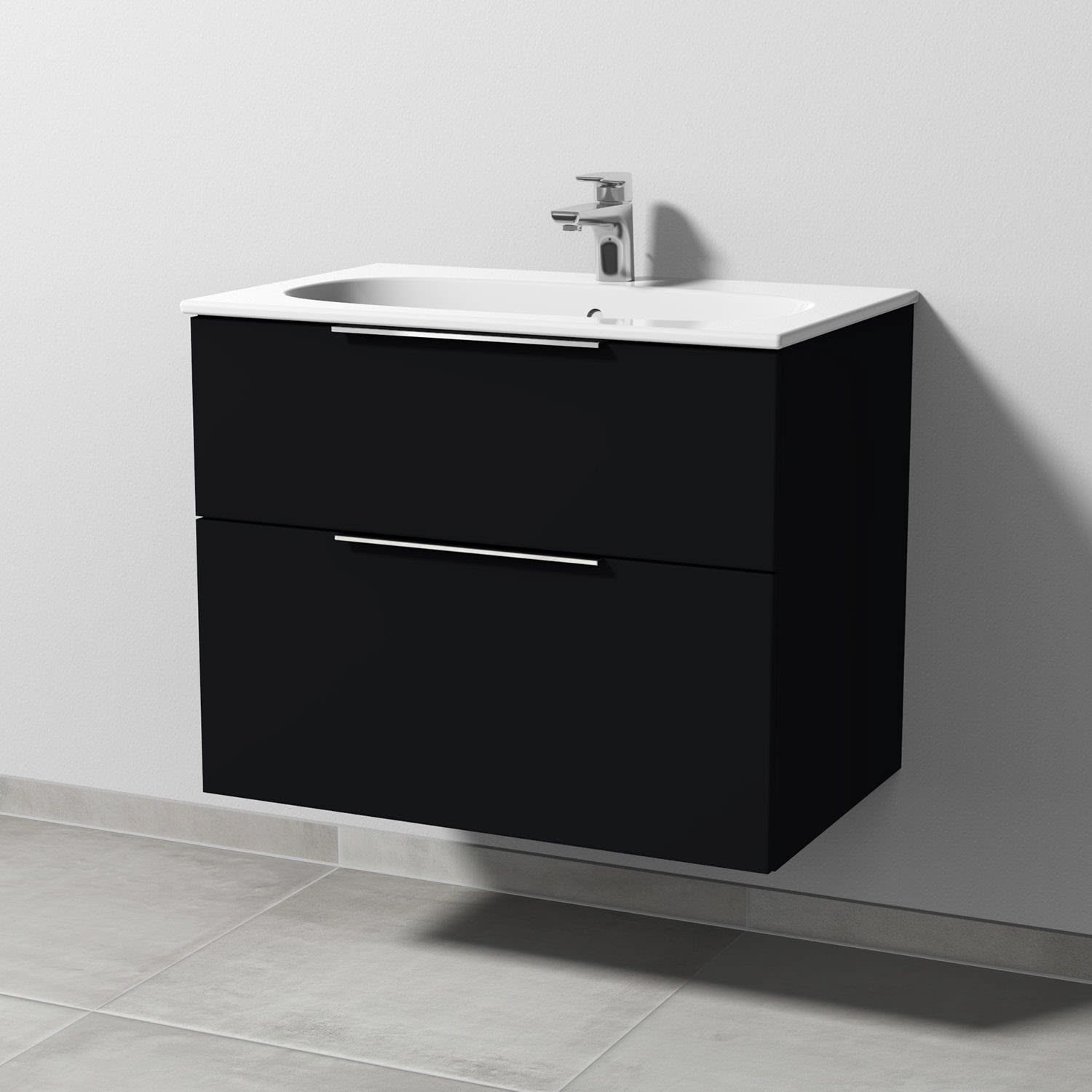 Sanipa 3way Waschtischunterbau für Keramik-Waschtisch Acanto Slim 75 cm, 2 Auszüge mit Aufsatzgriff