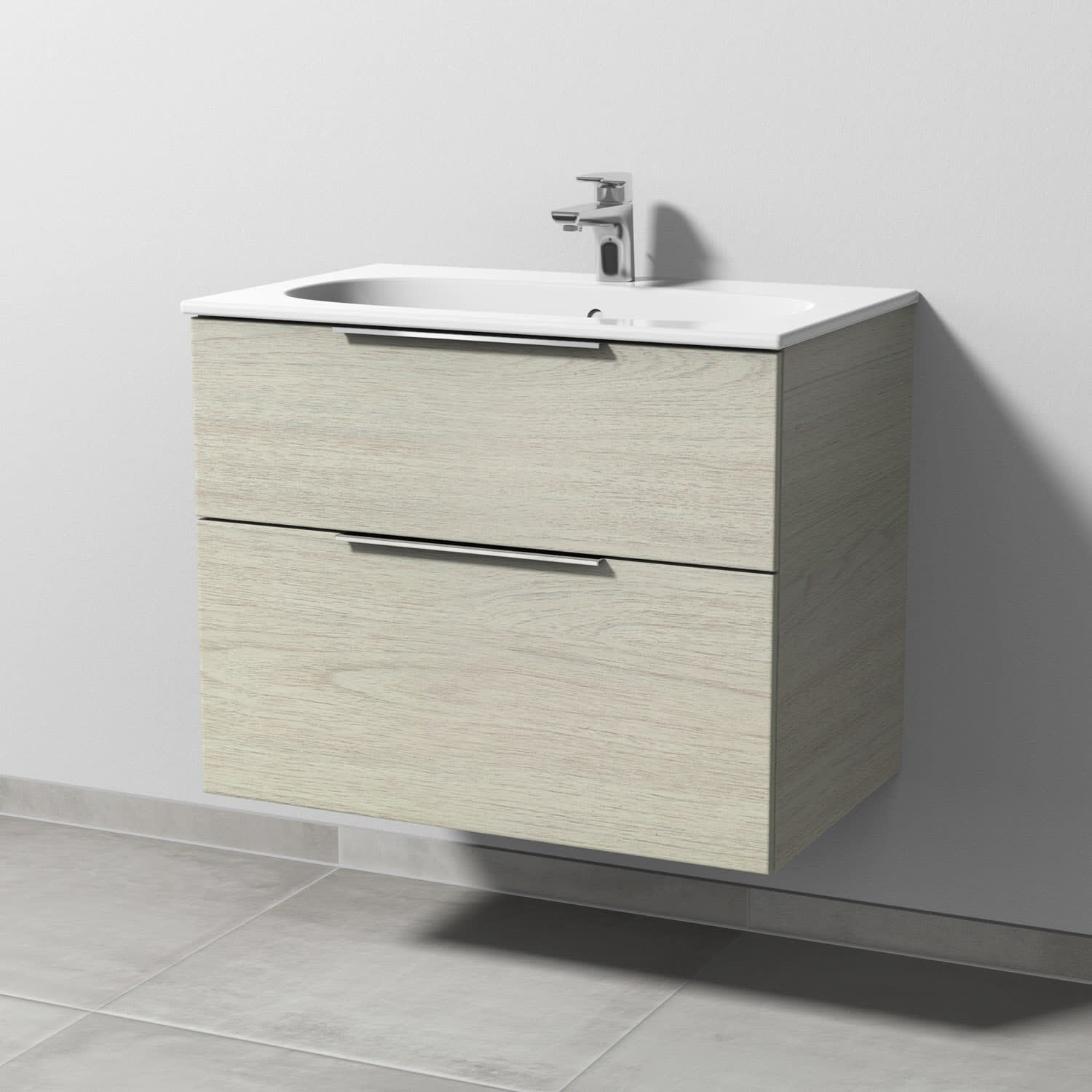 Sanipa 3way Waschtischunterbau für Keramik-Waschtisch Acanto Slim 75 cm, 2 Auszüge mit Aufsatzgriff