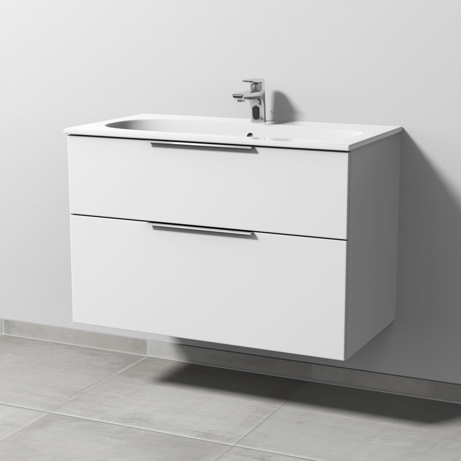 Sanipa 3way Waschtischunterbau für Keramik-Waschtisch Acanto Slim 90 cm, 2 Auszüge mit Aufsatzgriff