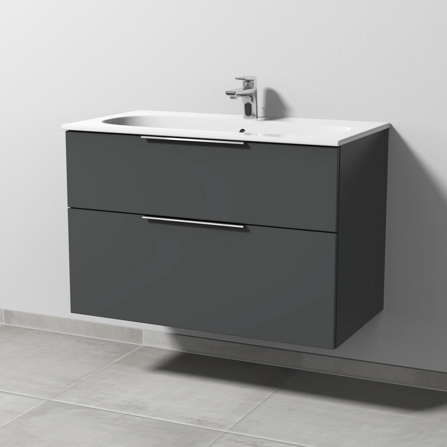 Sanipa 3way Waschtischunterbau für Keramik-Waschtisch Acanto Slim 90 cm, 2 Auszüge mit Aufsatzgriff