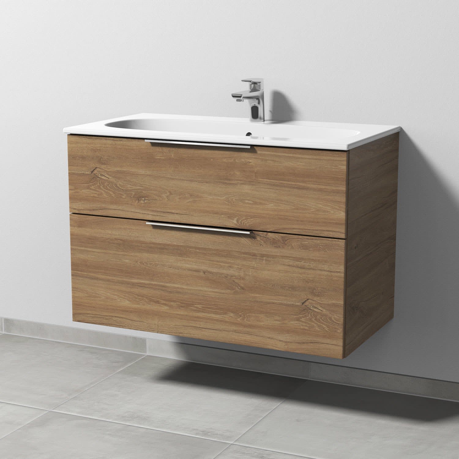 Sanipa 3way Waschtischunterbau für Keramik-Waschtisch Acanto Slim 90 cm, 2 Auszüge mit Aufsatzgriff