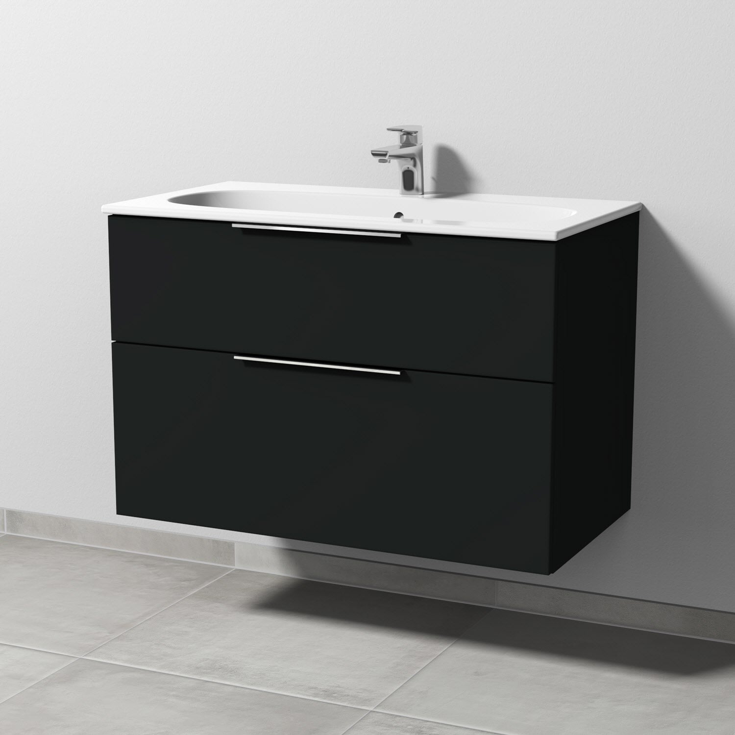 Sanipa 3way Waschtischunterbau für Keramik-Waschtisch Acanto Slim 90 cm, 2 Auszüge mit Aufsatzgriff