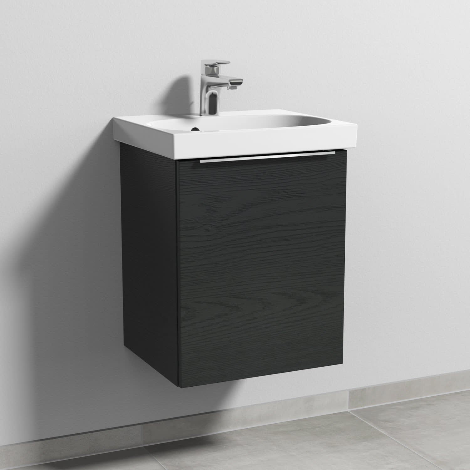 Sanipa 3way Waschtischunterbau für Keramik-Waschtisch Acanto 45 cm, 1 Tür, Anschlag rechts, mit Aufsatzgriff