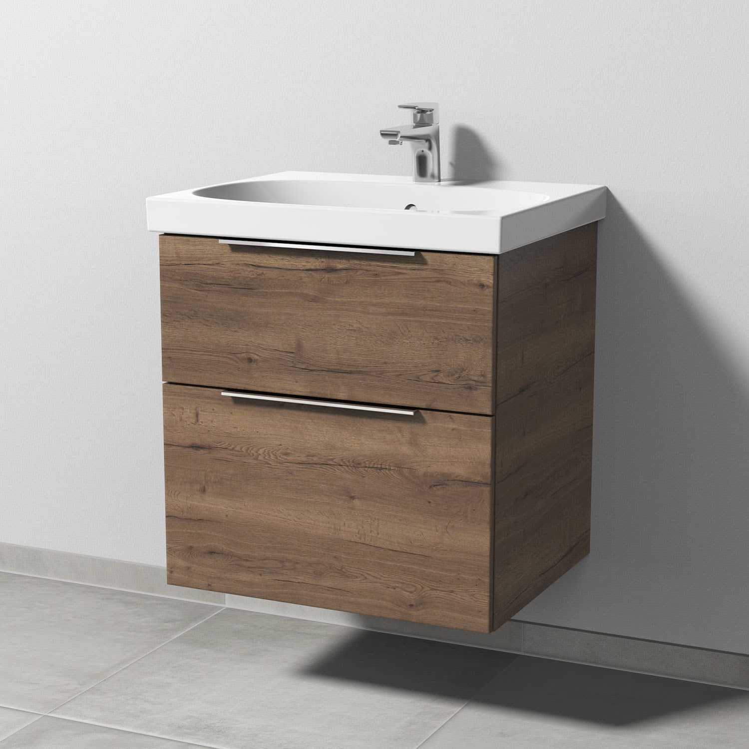 Sanipa 3way Waschtischunterbau für Keramik-Waschtisch Acanto 60 cm, 2 Auszüge mit Aufsatzgriff