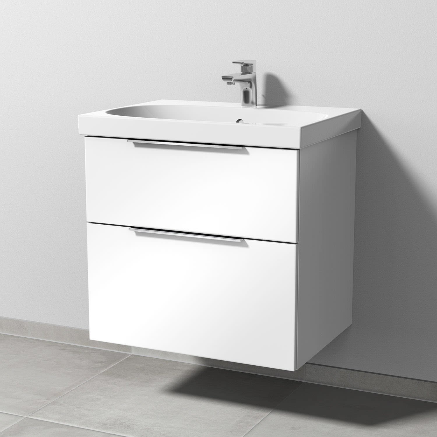 Sanipa 3way Waschtischunterbau für Keramik-Waschtisch Acanto 65 cm, 2 Auszüge mit Aufsatzgriff
