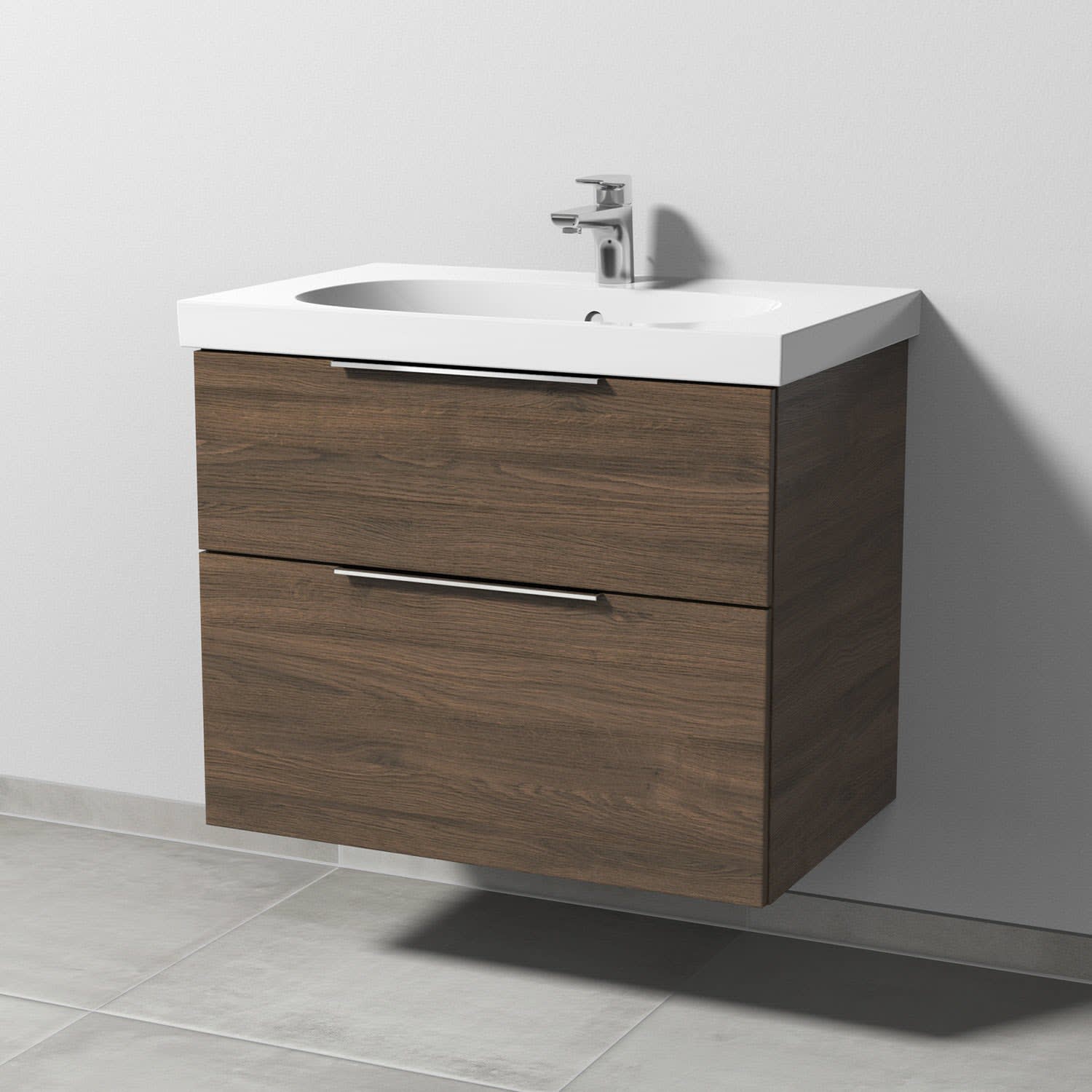 Sanipa 3way Waschtischunterbau für Keramik-Waschtisch Acanto 75 cm, 2 Auszüge mit Aufsatzgriff