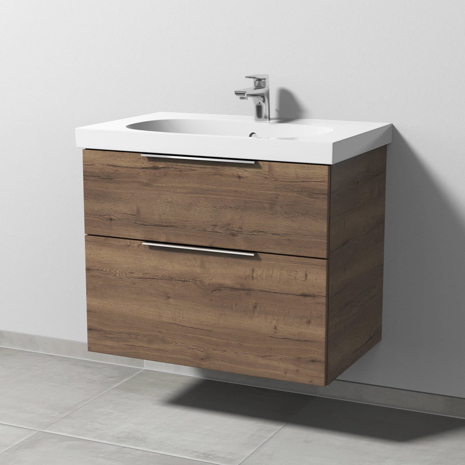 Sanipa 3way Waschtischunterbau für Keramik-Waschtisch Acanto 75 cm, 2 Auszüge mit Aufsatzgriff