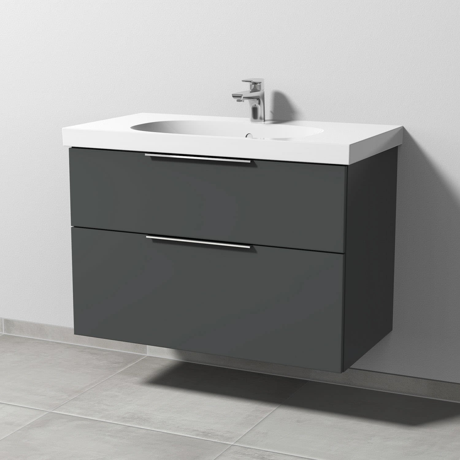 Sanipa 3way Waschtischunterbau für Keramik-Waschtisch Acanto 90 cm, 2 Auszüge mit Aufsatzgriff