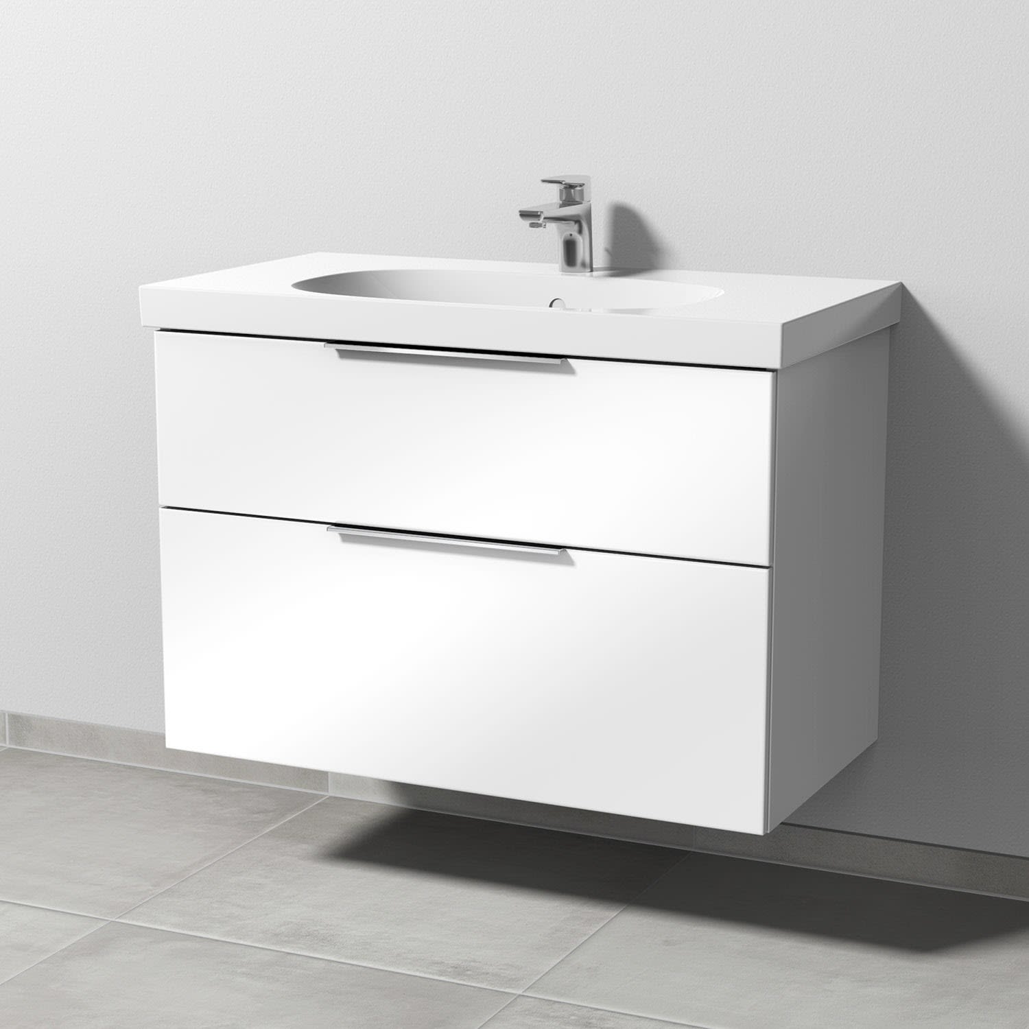 Sanipa 3way Waschtischunterbau für Keramik-Waschtisch Acanto 90 cm, 2 Auszüge mit Aufsatzgriff