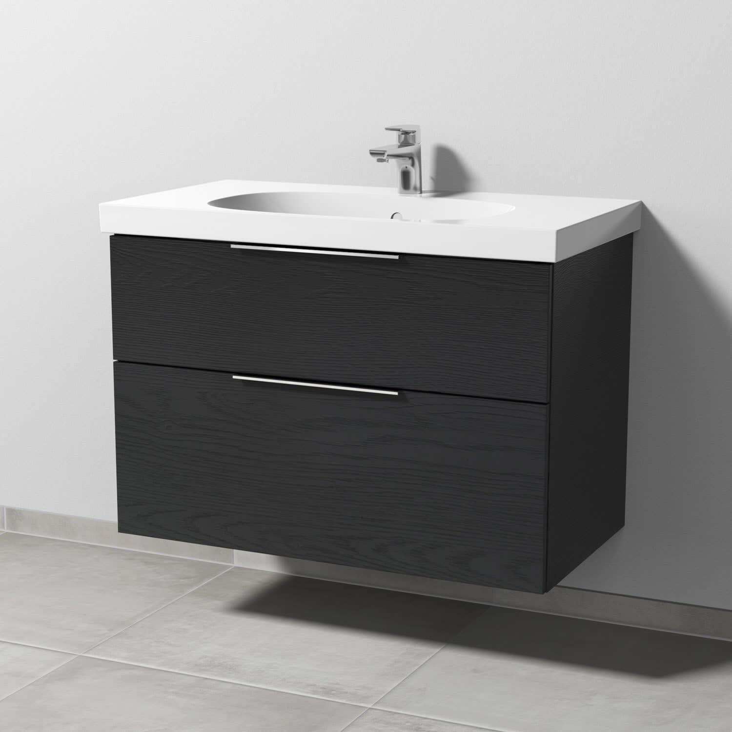 Sanipa 3way Waschtischunterbau für Keramik-Waschtisch Acanto 90 cm, 2 Auszüge mit Aufsatzgriff