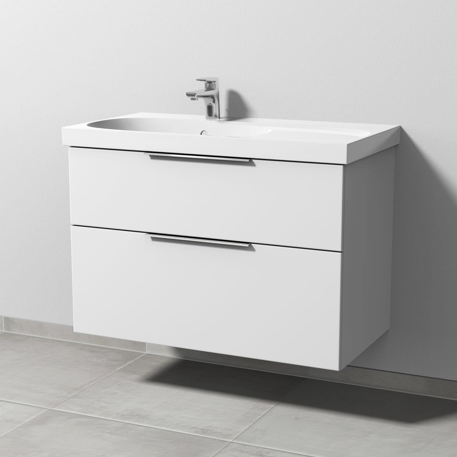 Sanipa 3way Waschtischunterbau für Keramik-Waschtisch Acanto 90 cm Ablagefläche rechts, 2 Auszüge mit Aufsatzgriff