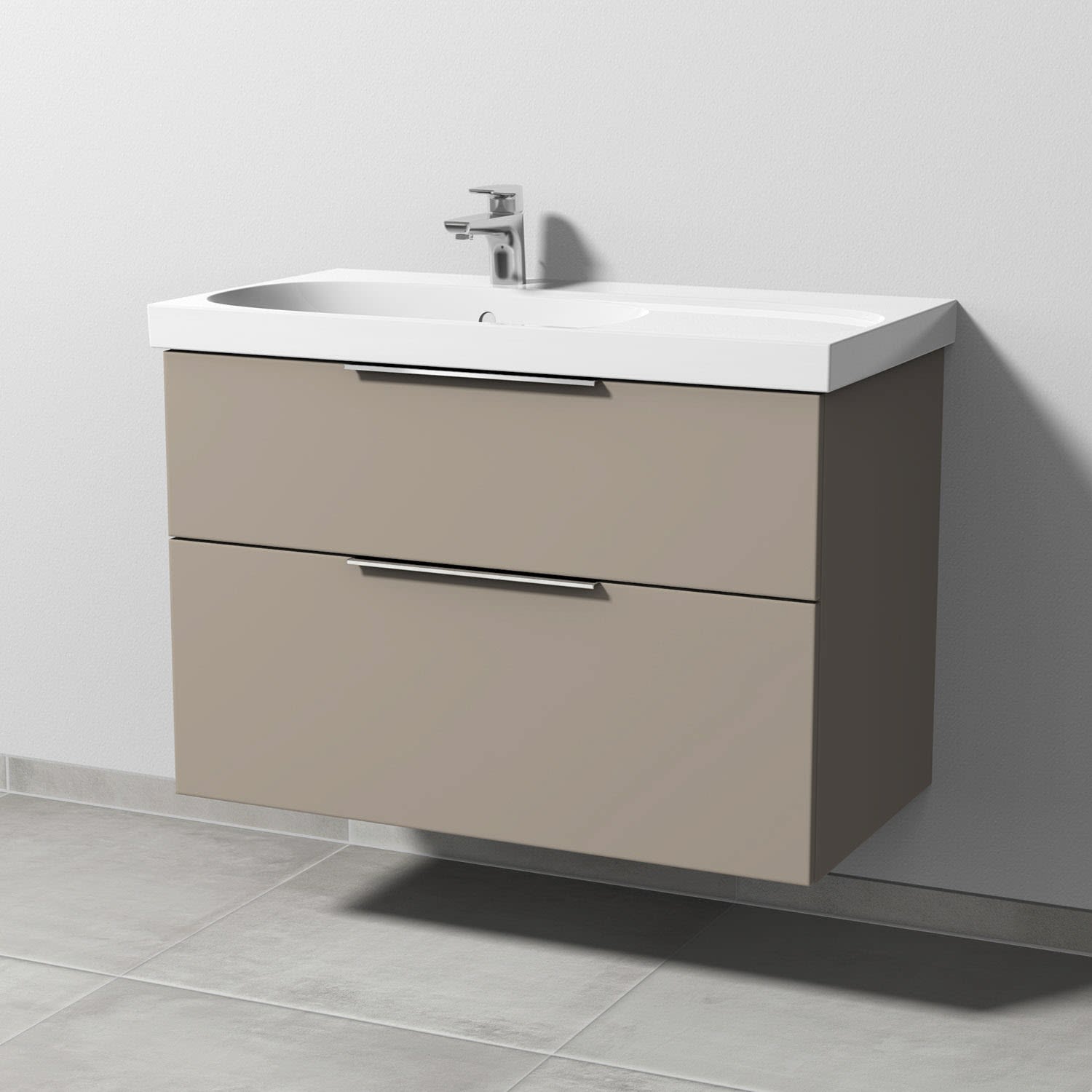 Sanipa 3way Waschtischunterbau für Keramik-Waschtisch Acanto 90 cm Ablagefläche rechts, 2 Auszüge mit Aufsatzgriff