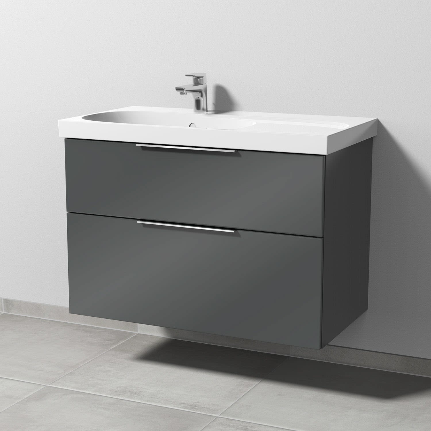 Sanipa 3way Waschtischunterbau für Keramik-Waschtisch Acanto 90 cm Ablagefläche rechts, 2 Auszüge mit Aufsatzgriff