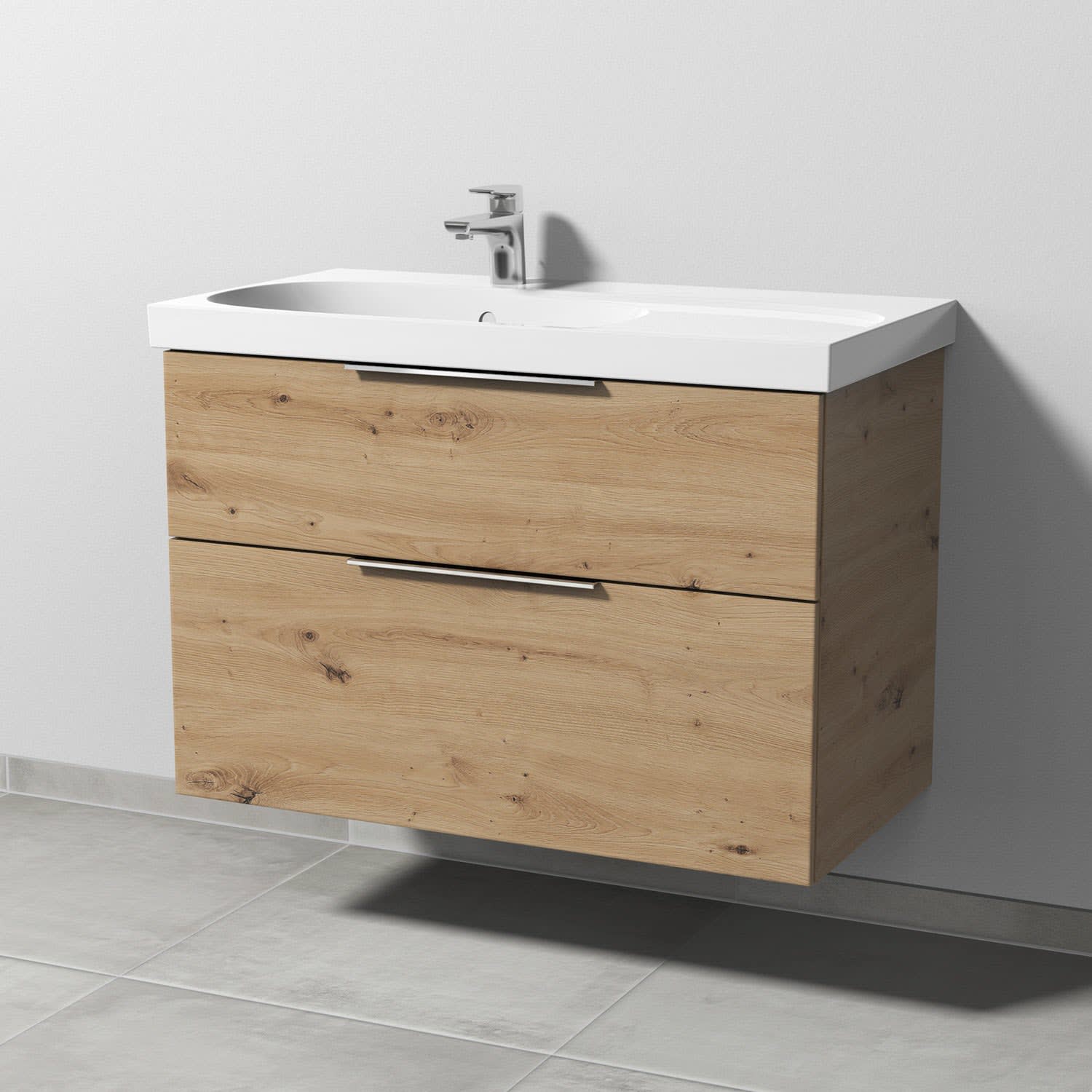Sanipa 3way Waschtischunterbau für Keramik-Waschtisch Acanto 90 cm Ablagefläche rechts, 2 Auszüge mit Aufsatzgriff