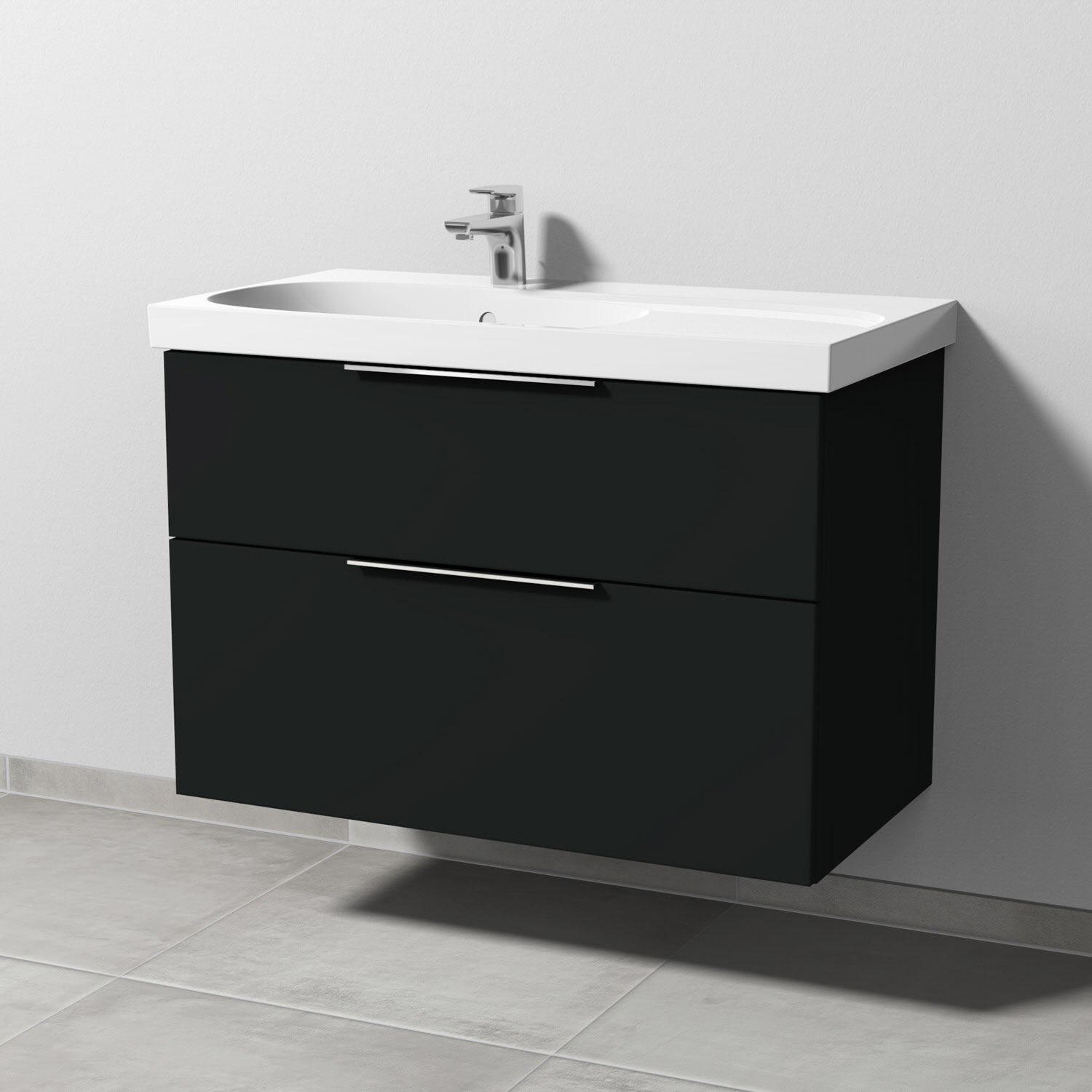 Sanipa 3way Waschtischunterbau für Keramik-Waschtisch Acanto 90 cm Ablagefläche rechts, 2 Auszüge mit Aufsatzgriff